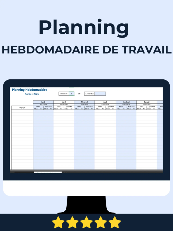 Achetez le tableau pour accéder comme modifier votre modèle Planning hebdomadaire de travail.